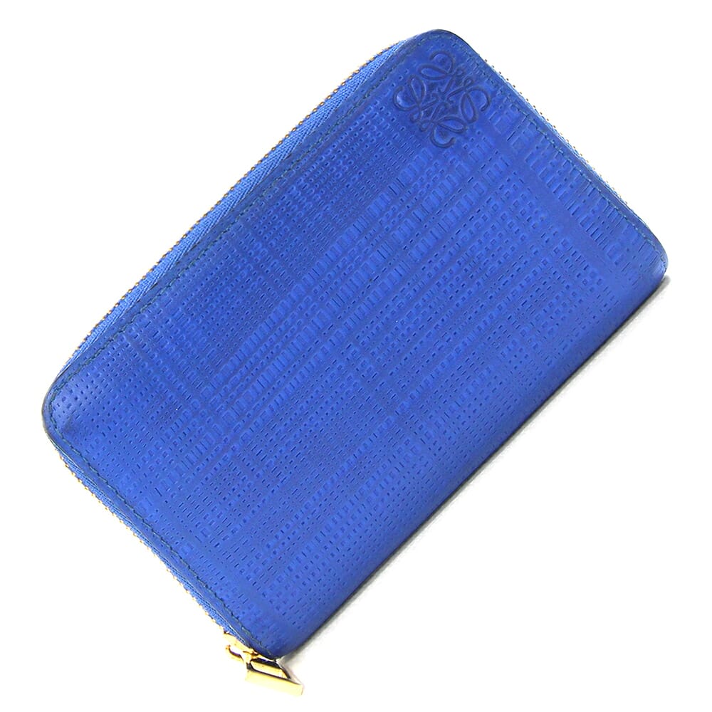 ロエベ コインケース リピート ブルー レザー 中古 小銭入れ ミニ財布 コンパクトウォレット ラウンドファスナー レディース アナグラム