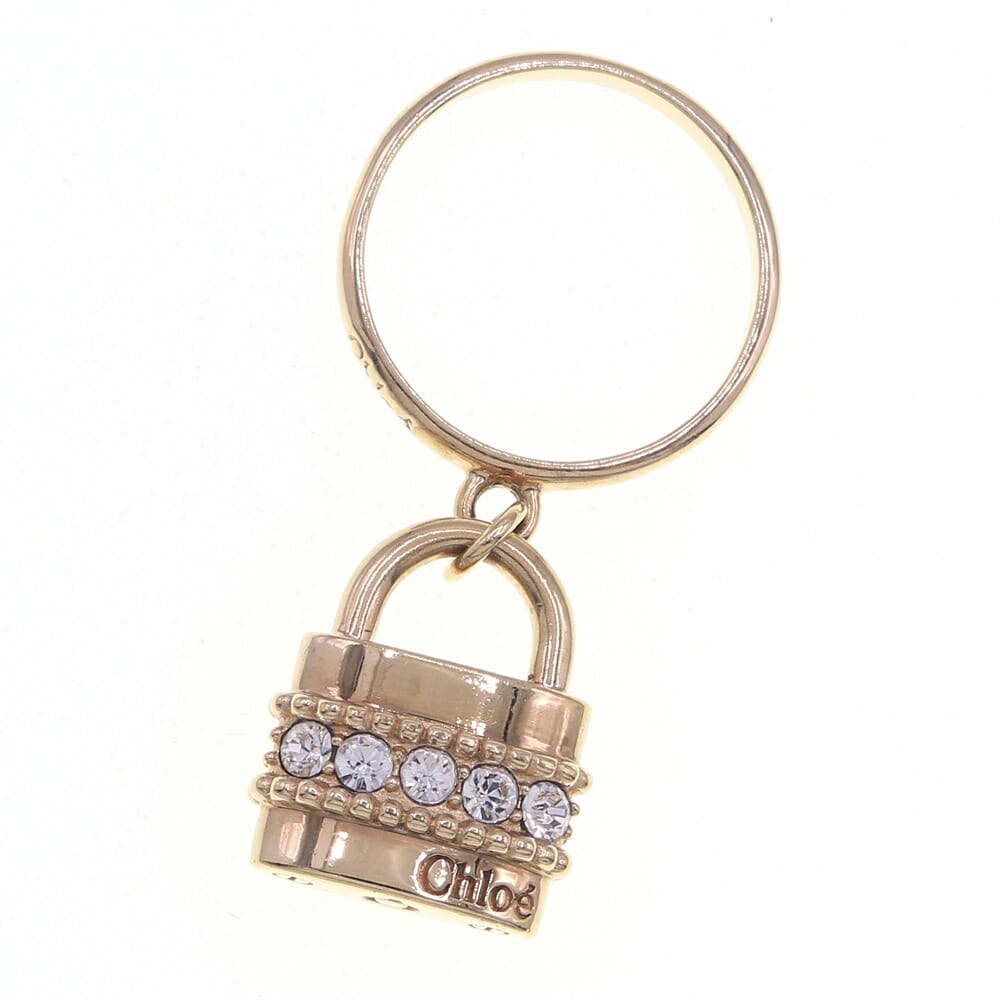 クロエ リング パドロック ゴールド メタル クリスタル 11号 中古 南京錠 カデナ ロゴ ラインストーン 指輪 アクセサリー レディース