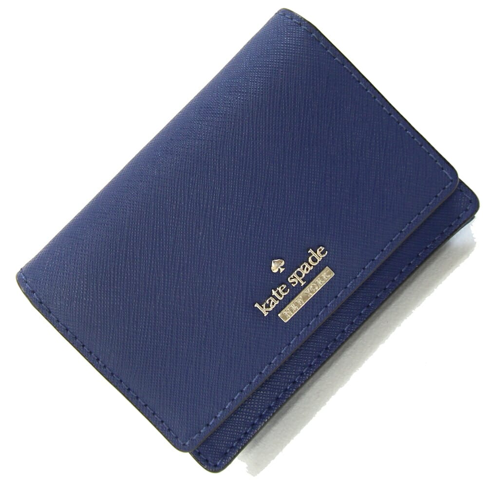 ケイトスペード コインケース PWRU5096 ネイビー レザー 中古 コンパクトウォレット ミニ 財布 カードケース 小銭入れ ロゴ キーリング付 鍵 レディース kate