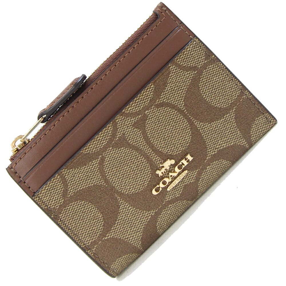 コーチ コインケース シグネチャー 88208 ベージュ ブラウン PVC レザー 中古 カードケース 小銭入れ パスケース ロゴ キーリング付 レディース