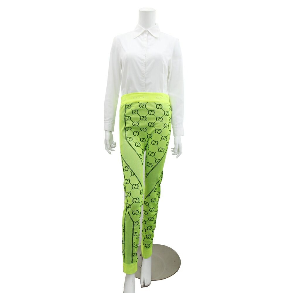 グッチ レギンスパンツ 693300 イエロー ナイロン ポリウレタン Mサイズ 中古 レディース ボトムス アパレル ファッション GG柄 蛍光イエロー