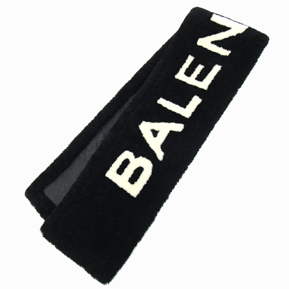 バレンシアガ マフラー 486094 ブラック ホワイト ラムファー レザー 中古 羊革 ストール ロゴ ファッション アパレル レディース メンズ