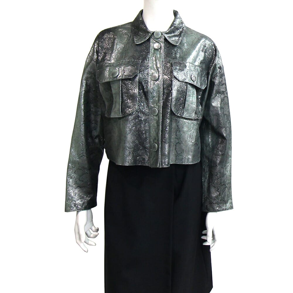 エンポリオ アルマーニ レディースジャケット グリーン シルバー ヤギ革 中古 長袖 レザージャケット ショート丈 ファッション アパレル レディース EMPORIO