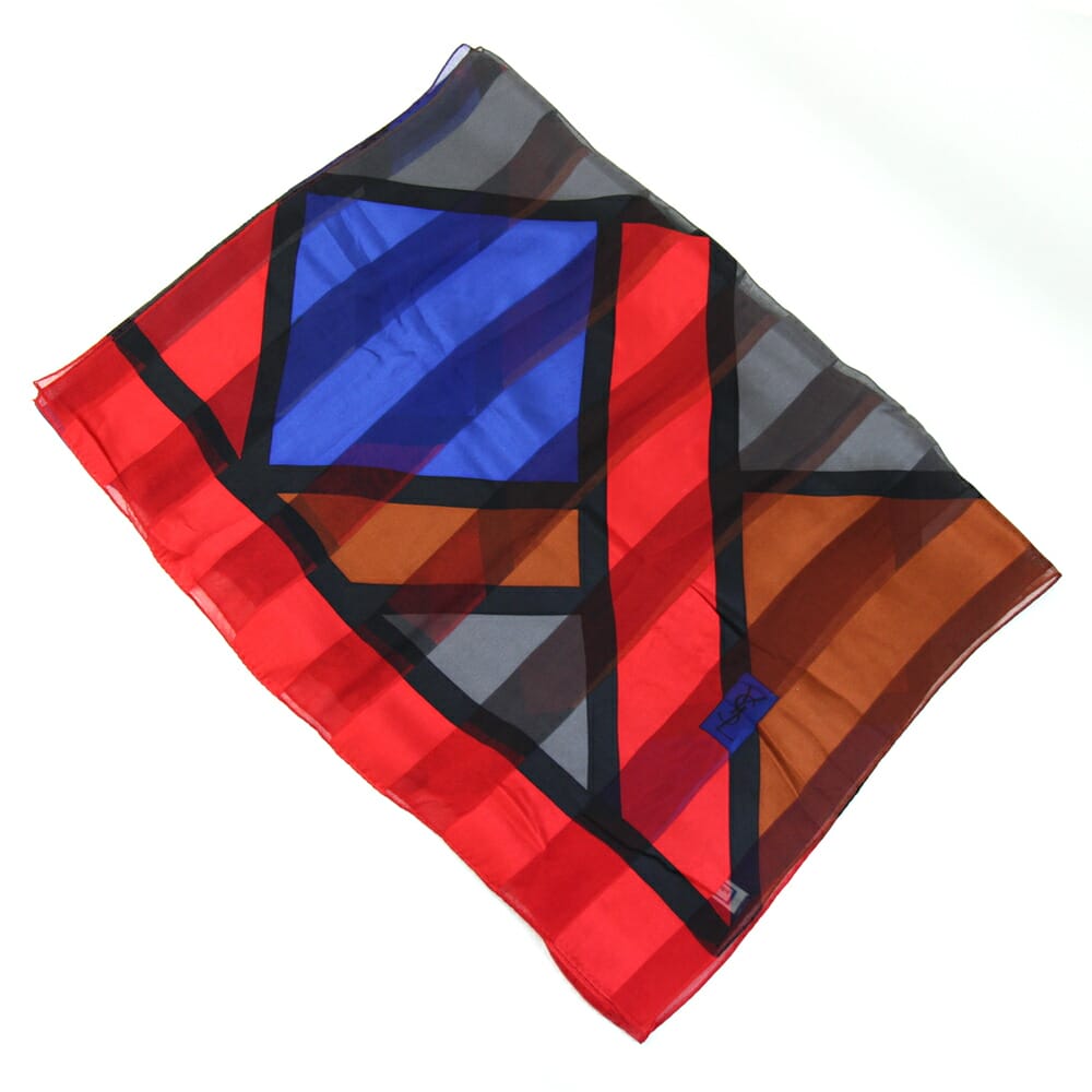 イヴサンローラン スカーフ マルチカラー シルク100% 中古 シフォン 透け感 ファッション アパレル ストール ヴィンテージ オールド レディース YVES SAINT