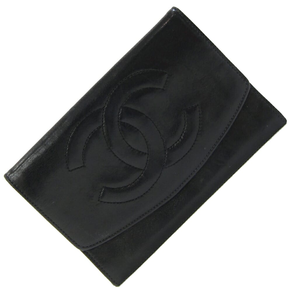 シャネル 二つ折り財布 ココマーク ブラック ラムスキン 中古 ウォレット ヴィンテージ オールド レディース
