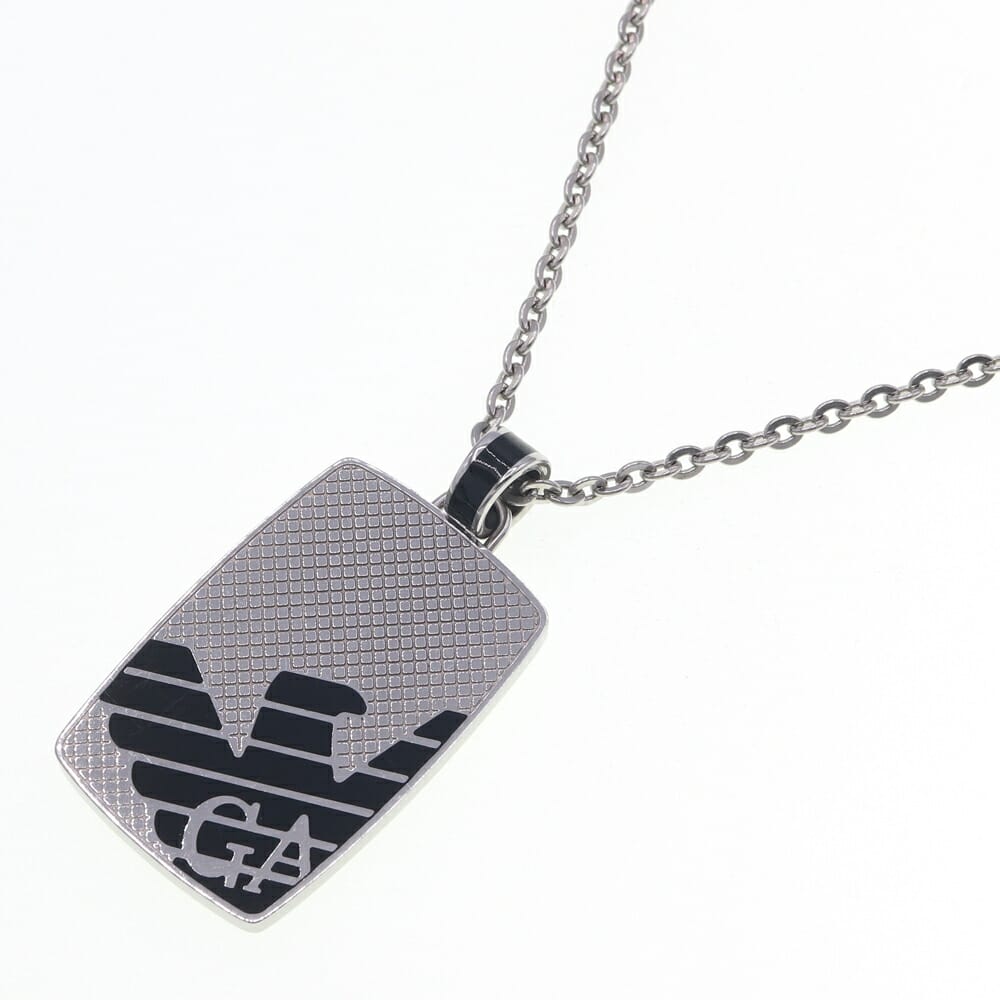 エンポリオアルマーニ ネックレス シルバー ブラック メタル 中古 ペンダント アクセサリー プレート チェーン メンズ EMPORIO