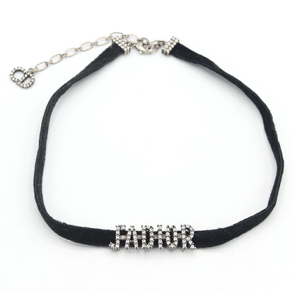 ディオール チョーカー ブラック ベロア ラインストーン 中古 ネックレス アクセサリー ロゴ レディース