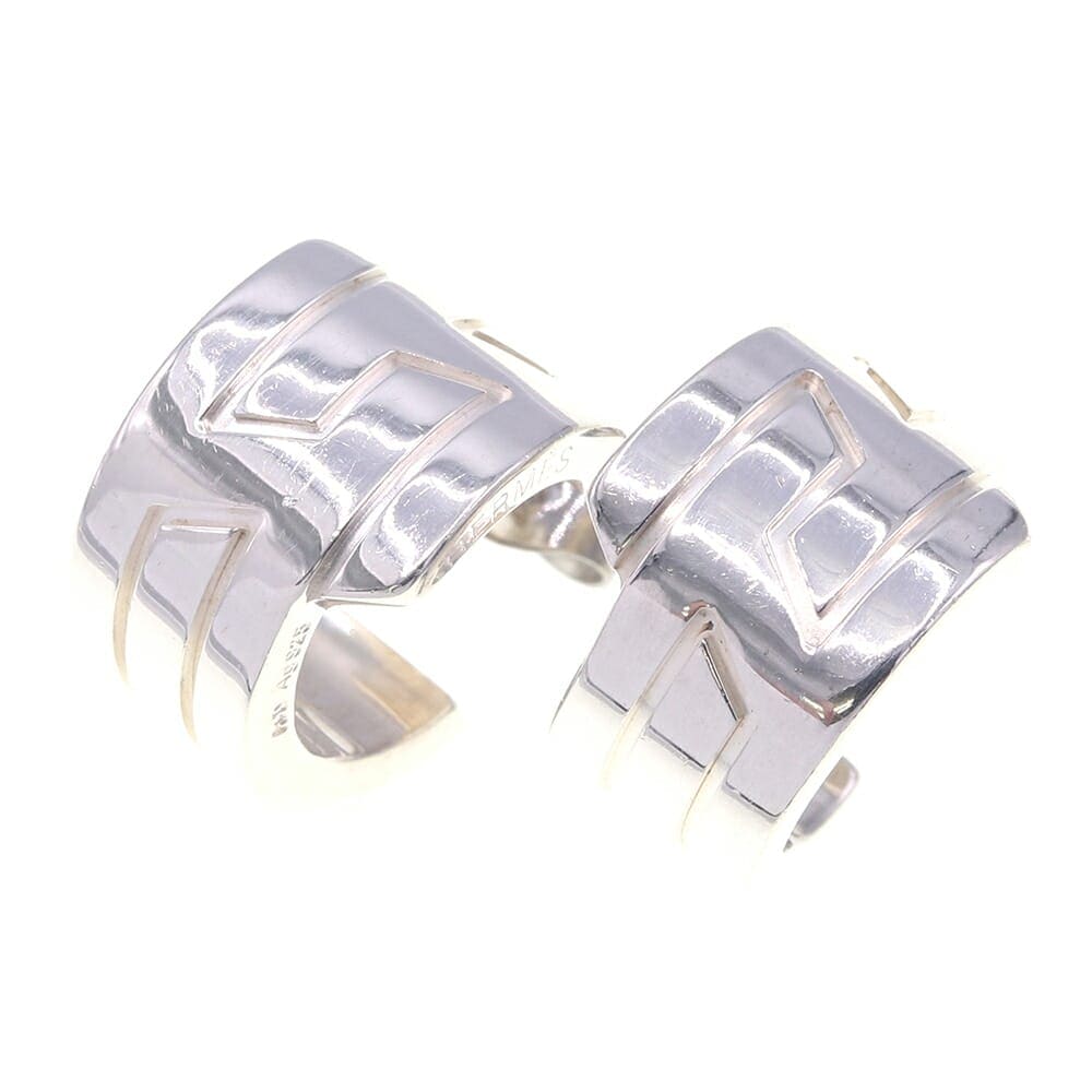 エルメス ピアス イタリーク SV スターリングシルバー925 中古 アクセサリー フープ レディース スタッド Hロゴ