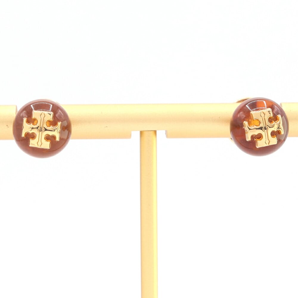 トリーバーチ ピアス クリアブラウン ゴールド レジン メタル 中古 アクセサリー スタッドピアス ロゴ レディース TORY