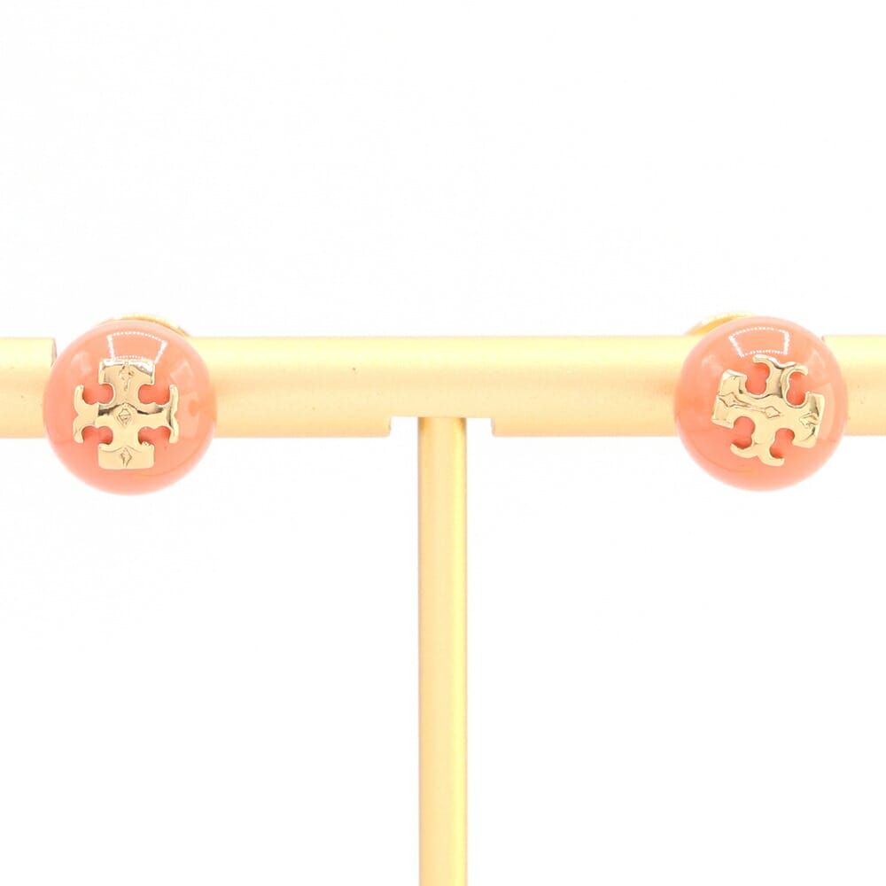 トリーバーチ ピアス サーモンピンク ゴールド メタル 中古 アクセサリー ロゴ スタッドピアス レディース TORY