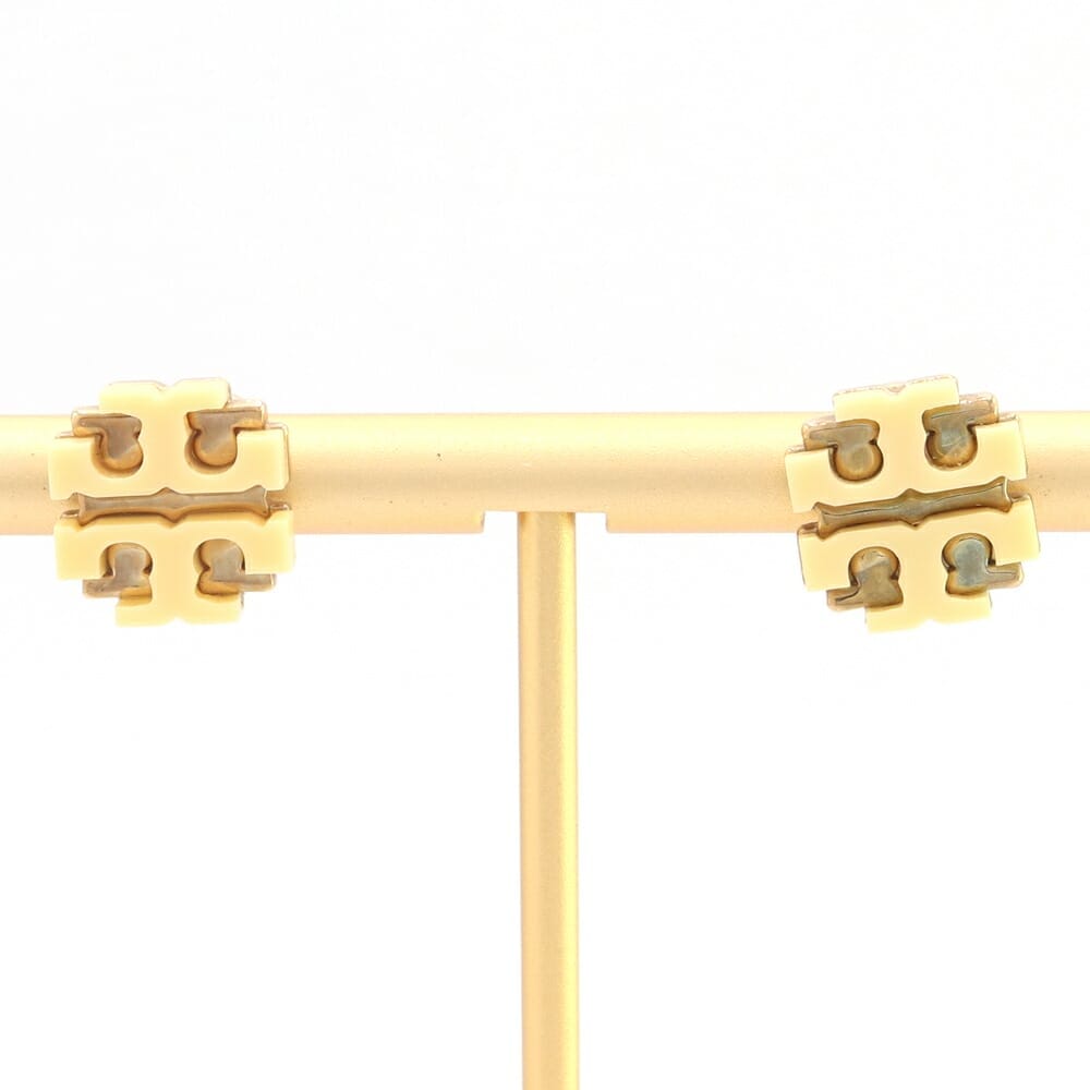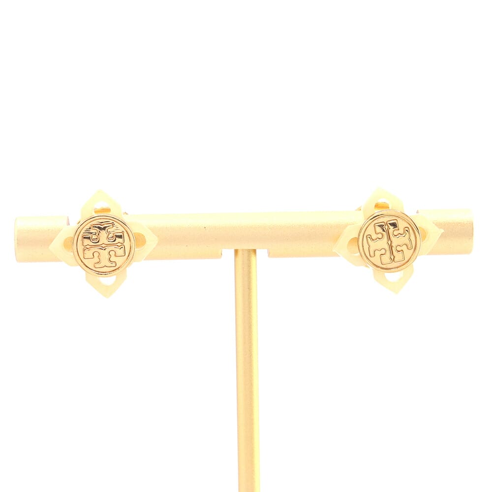 トリーバーチ ピアス クリーム ゴールド メタル 中古 アクセサリー ロゴ スタッドピアス レディース TORY
