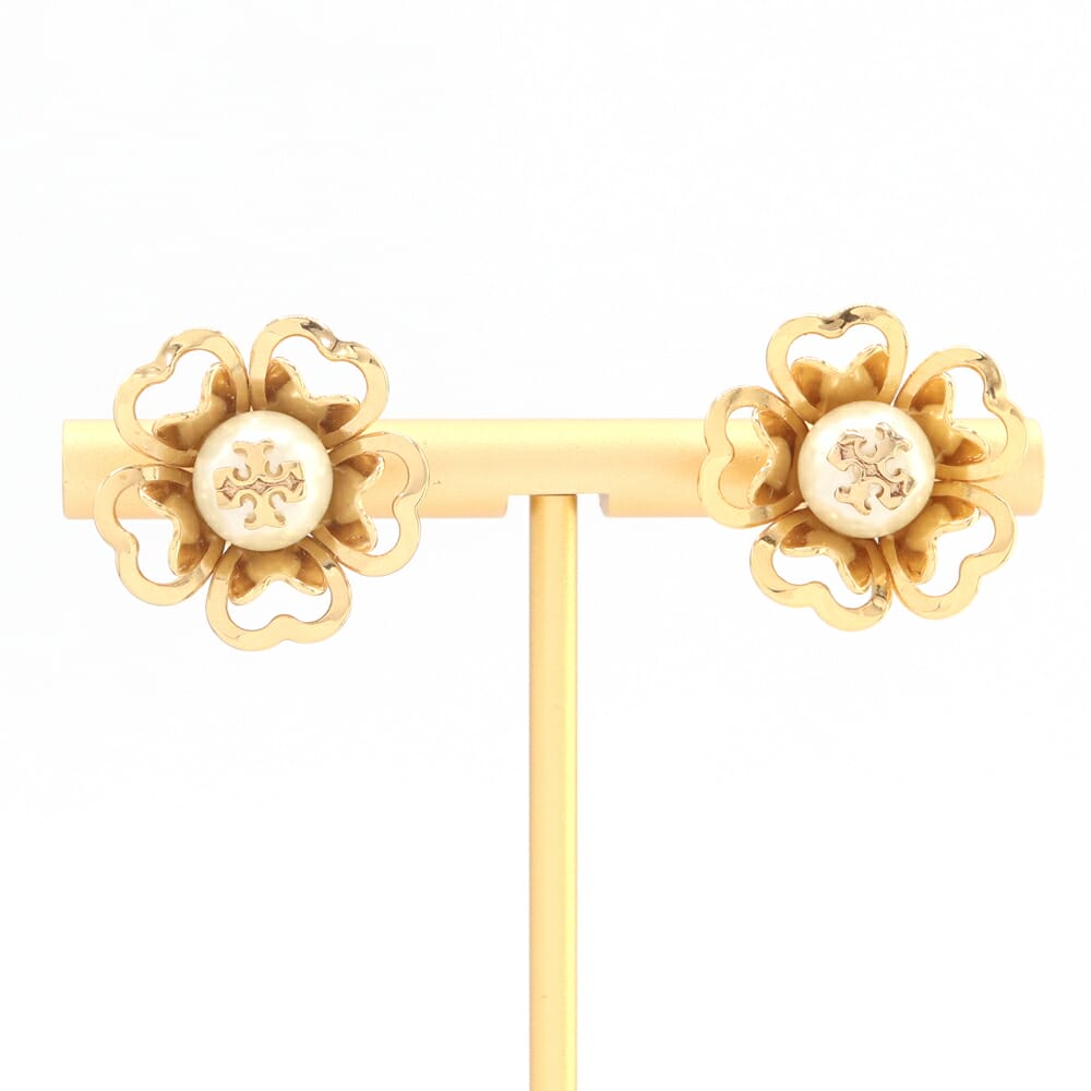 トリーバーチ ピアス ゴールド メタル クリスタルパール 中古 アクセサリー フラワー ロゴ レディース TORY