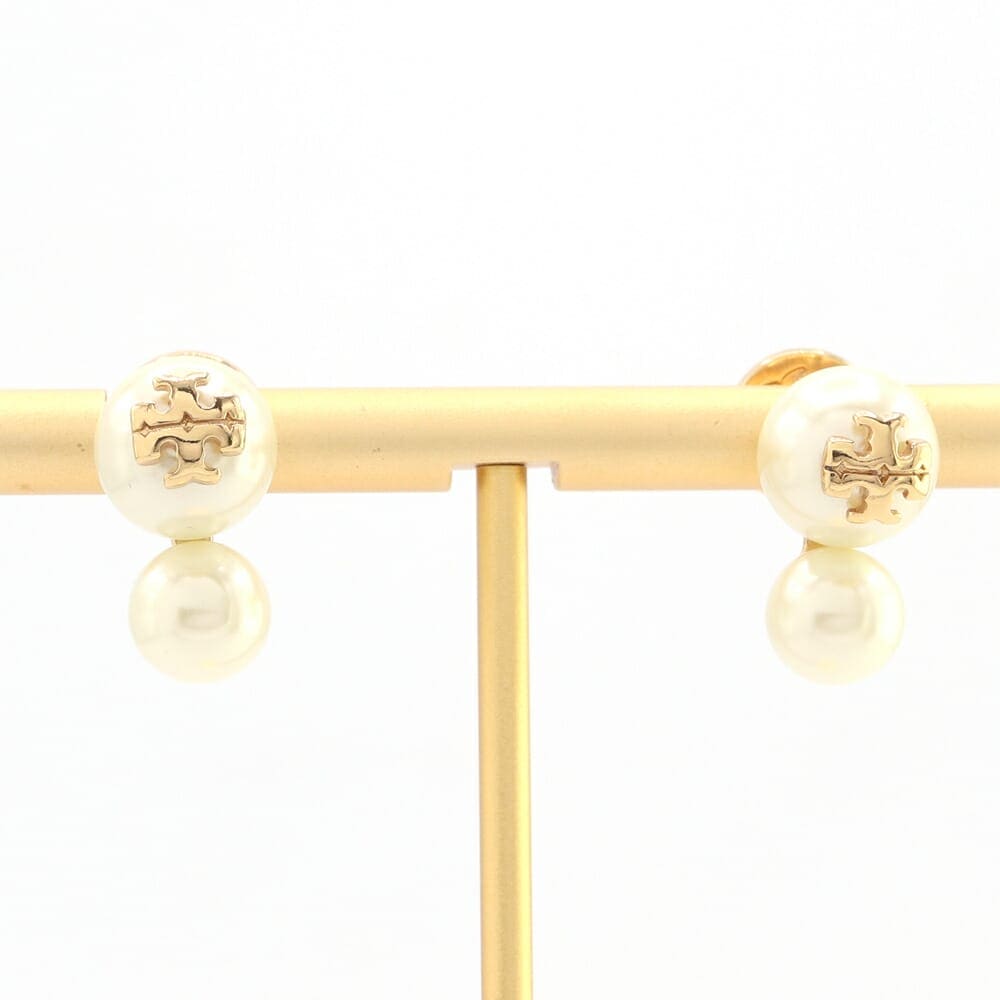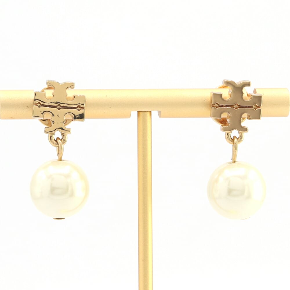 トリーバーチ ピアス 48298 ゴールド メタル クリスタルパール 中古 アクセサリー ロゴ レディース 女性 TORY