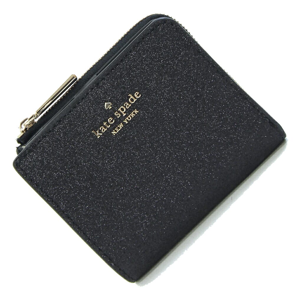 ケイトスペード 二つ折り財布 シミー K4711 ブラックグリッター 中古 コンパクトウォレット ミニ財布 ロゴ レディース Kate