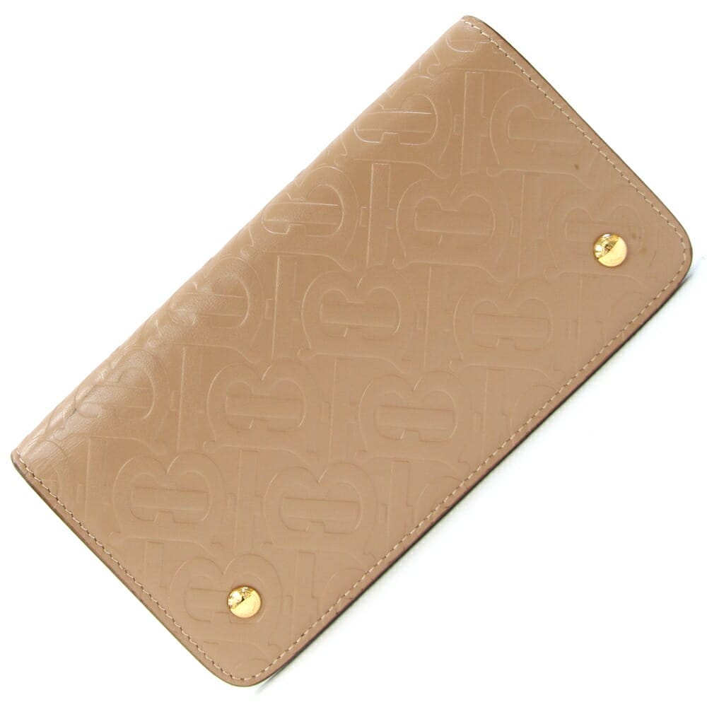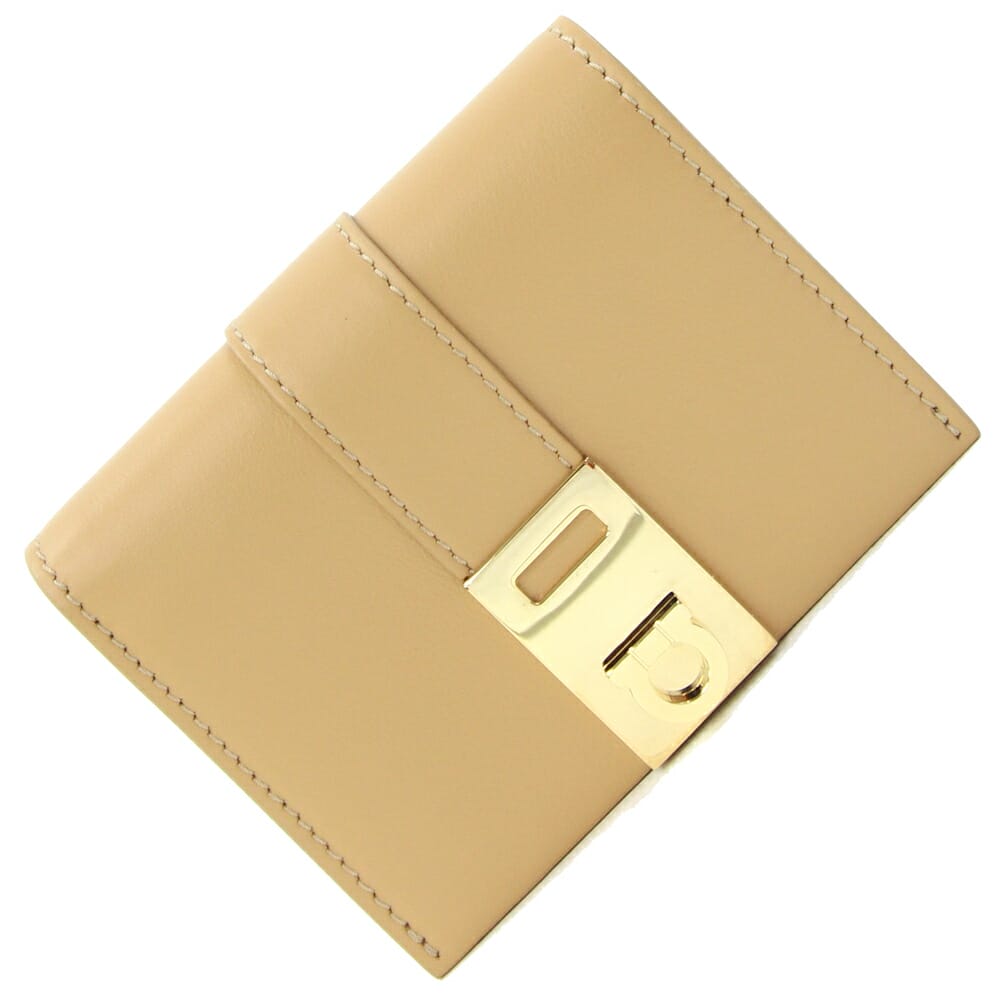 フェラガモ 二つ折り財布 ガンチーニ 22 0633 ベージュ レザー 中古 コンパクトウォレット ミニ財布 レディース Salbatore