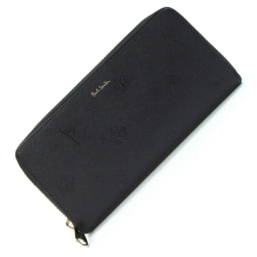 ポールスミス ラウンドファスナー長財布 PSC955 ブラック レザー 中古 ロングウォレット ロゴ メンズ 男性 Paul