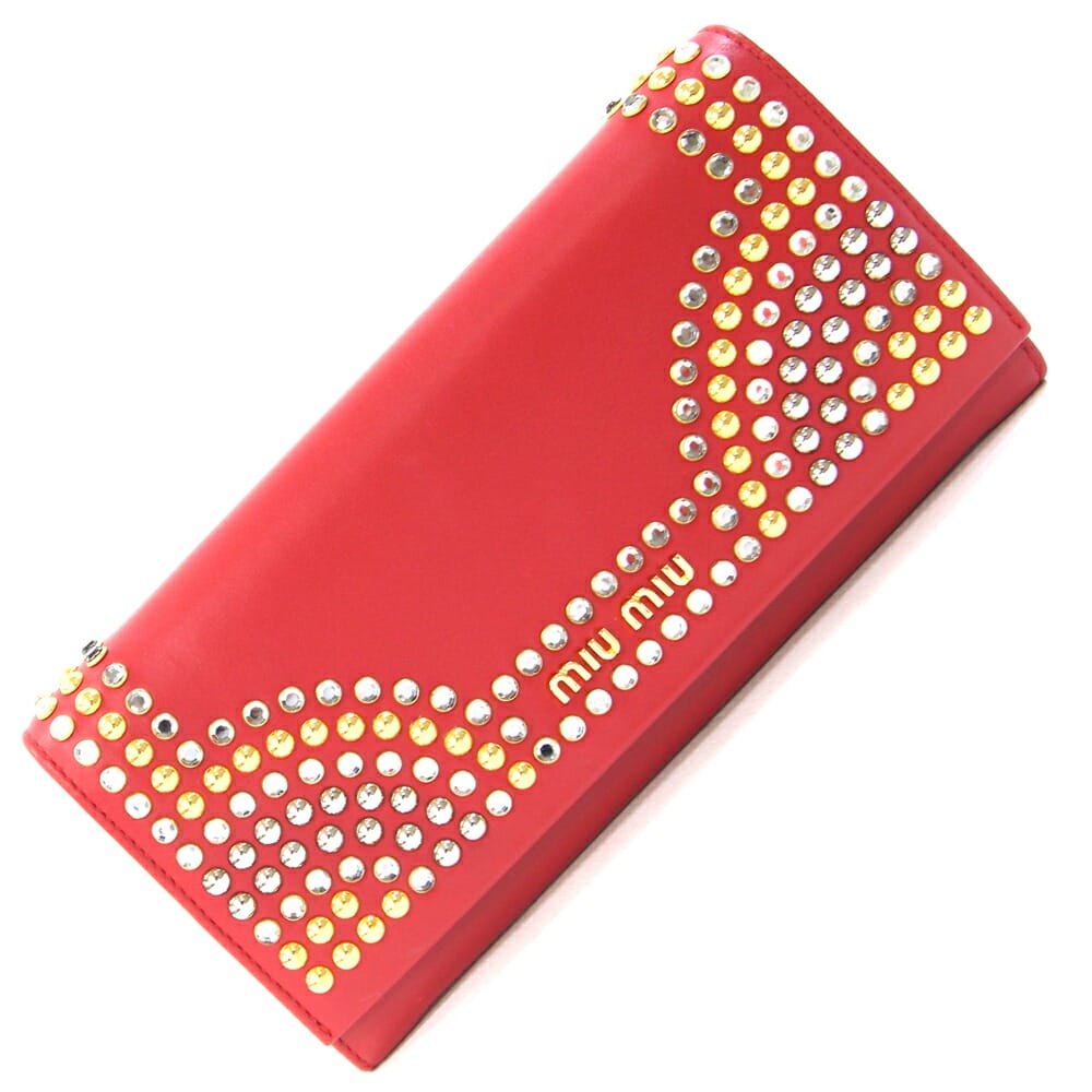 ミュウミュウ 二つ折り長財布 5MH109 レッド レザー 中古 ロングウォレット スタッズ ロゴ レディース MIU