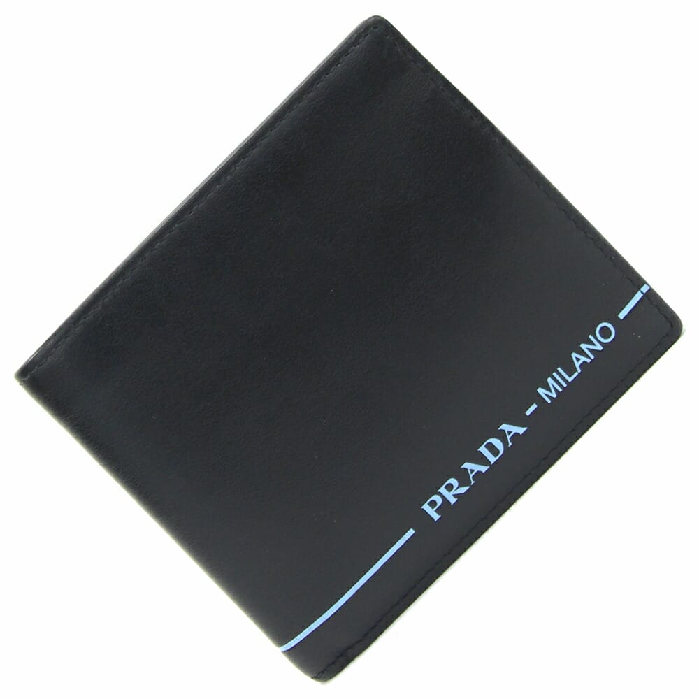 プラダ 二つ折り札入れ ブラック レザー 中古 コンパクトウォレット 財布 小銭入れなし ロゴ メンズ