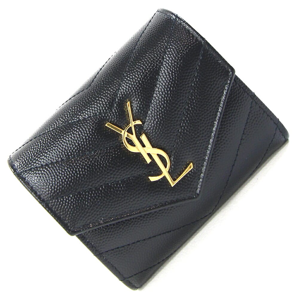 サンローラン 三つ折り財布 カサンドラ マルチフォールドウォレット 692061 ブラック レザー 中古 コンパクトウォレット ミニ財布 ロゴ キルティング レディース SAINT