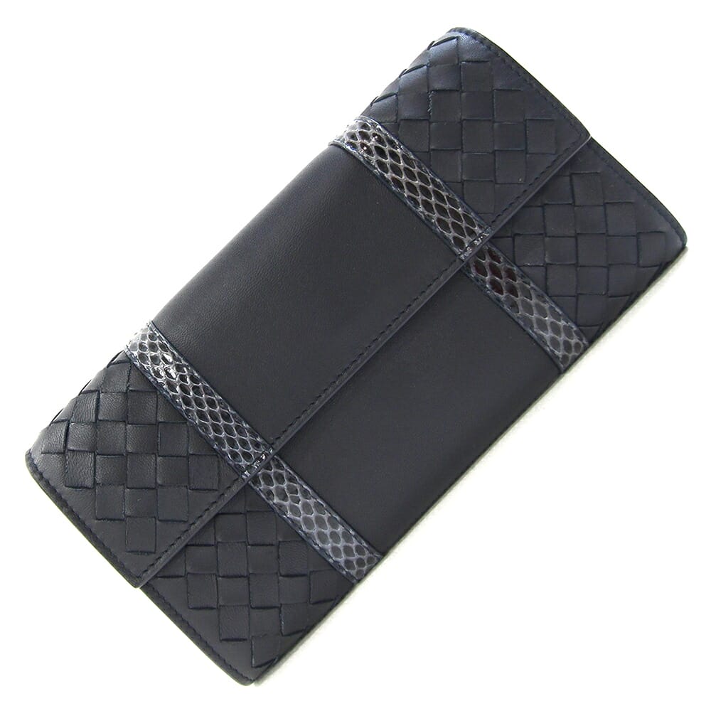 ボッテガヴェネタ 二つ折り長財布 イントレチャート ブラック レザー アイヤーズ 中古 ロングウォレット 蛇 ヘビ エキゾチックレザー メンズ レディース BOTTEGA