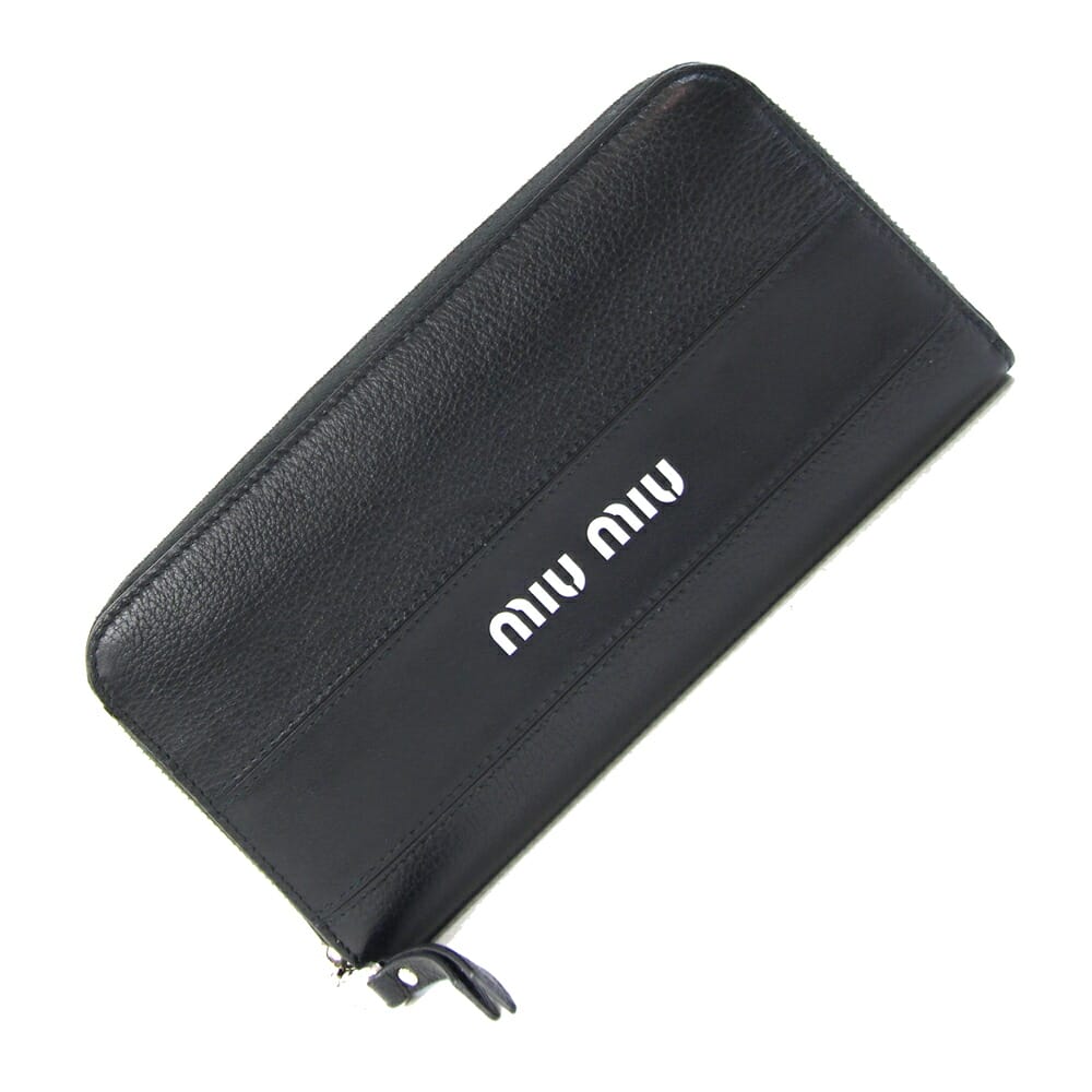 ミュウミュウ ラウンドファスナー長財布 マドラス シティ 5ML506 ブラック レザー 中古 ロングウォレット ロゴ ラウンドジップ レディース MIU