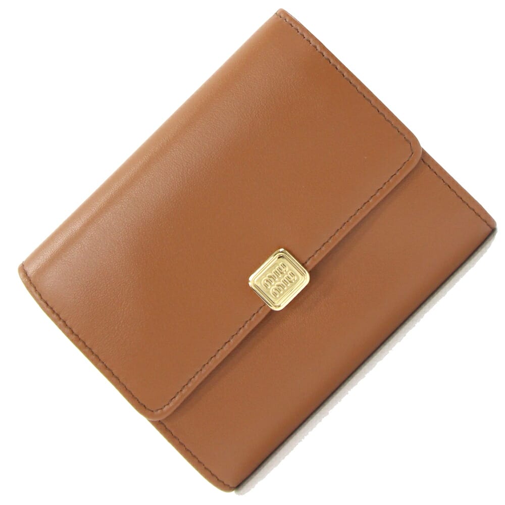 ミュウミュウ 三つ折り財布 5MH040 ブラウン レザー 中古 コンパクトウォレット ロゴ レディース MIU