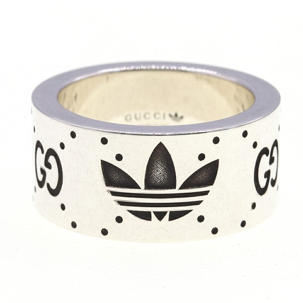 グッチ リング アディダス コラボ エングレービング ワイド 702766 SV スターリングシルバー925 サイズ9/US4.5-5 中古 指輪 アクセサリー adidas レディース