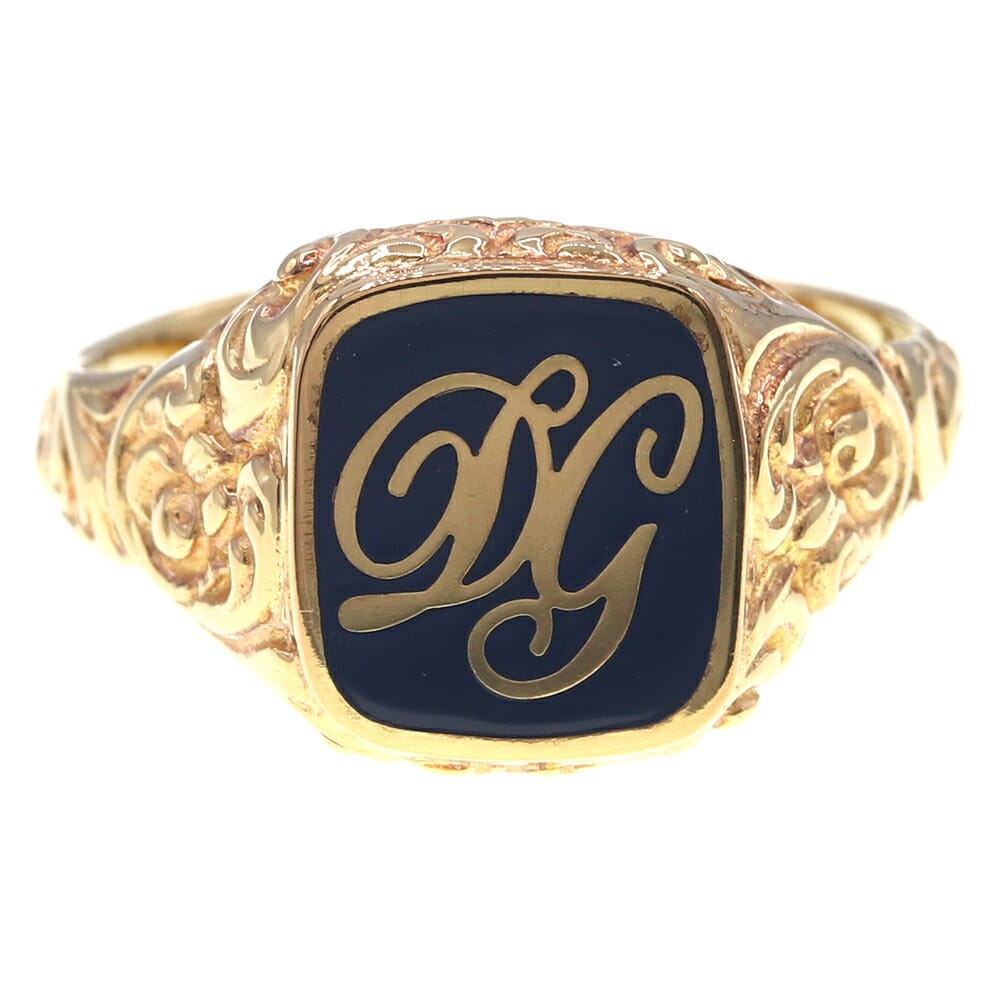 ドルチェ&ガッバーナ リング ロゴ ゴールド ネイビー メタル エナメル JP26号 US11.5 中古 指輪 アクセサリー D&G メンズ 印台